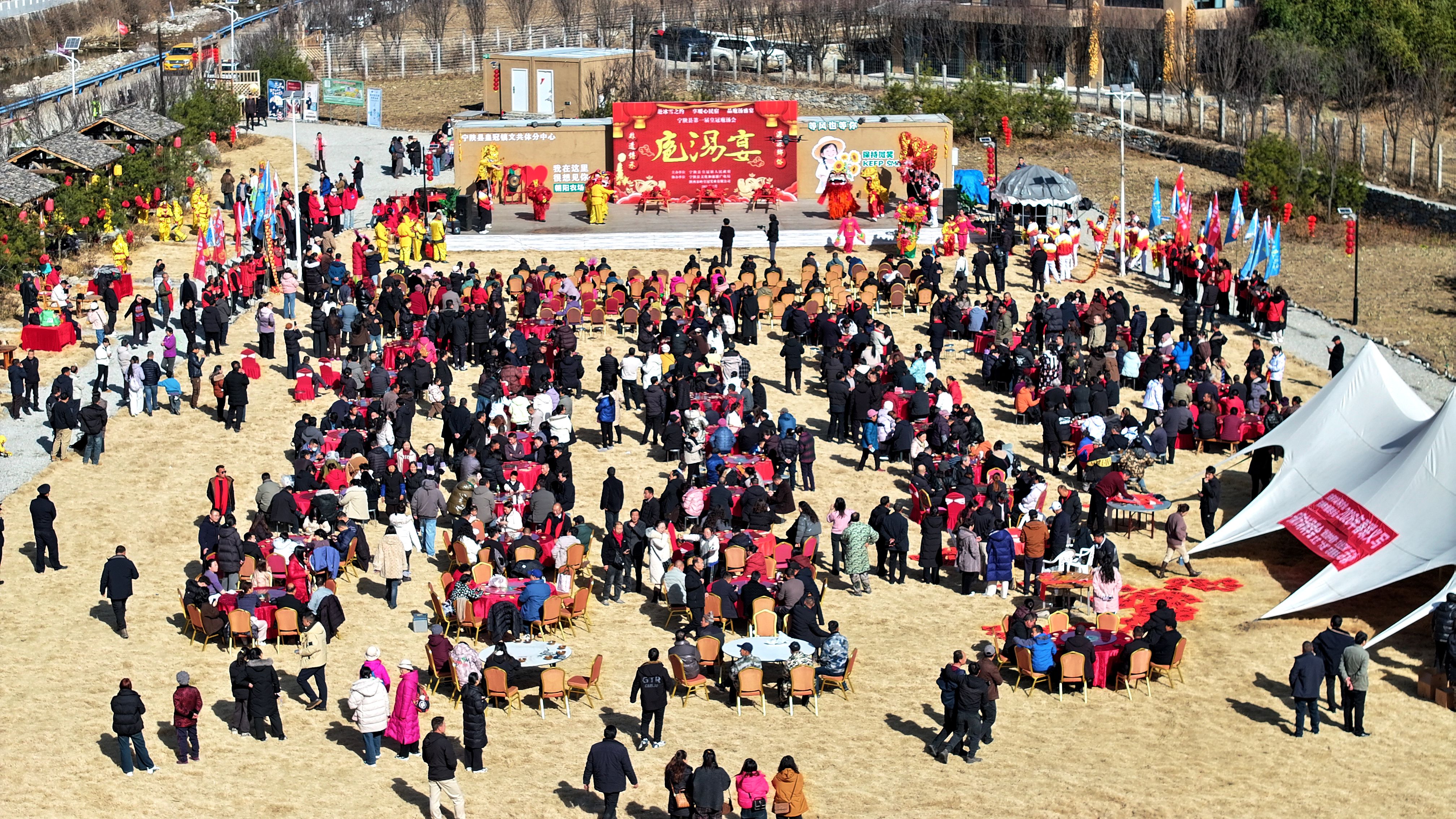 文化賦能是寧陜冬春旅游的核心亮點(diǎn)。1月16日,皇冠鎮(zhèn)朝陽(yáng)農(nóng)場(chǎng)里首屆皇冠庖湯會(huì)熱鬧開(kāi)席,《二嫂夸皇冠》的表演點(diǎn)燃現(xiàn)場(chǎng)氛圍,舞獅、彩船等傳統(tǒng)民俗輪番上演,莊重的祭天儀式傳遞著農(nóng)耕文明的厚重?;顒?dòng)現(xiàn)場(chǎng)墨香陣陣,鄉(xiāng)土菜肴香氣四溢?!坝玫亩际乾F(xiàn)殺黑豬,味道特別地道。”外地游客姜女士贊不絕口,西安游客葉格芳也直言:“專程前來(lái),不虛此行。”此次庖湯會(huì)共吸引游客2300余人,實(shí)現(xiàn)旅游消費(fèi)30萬(wàn)元。