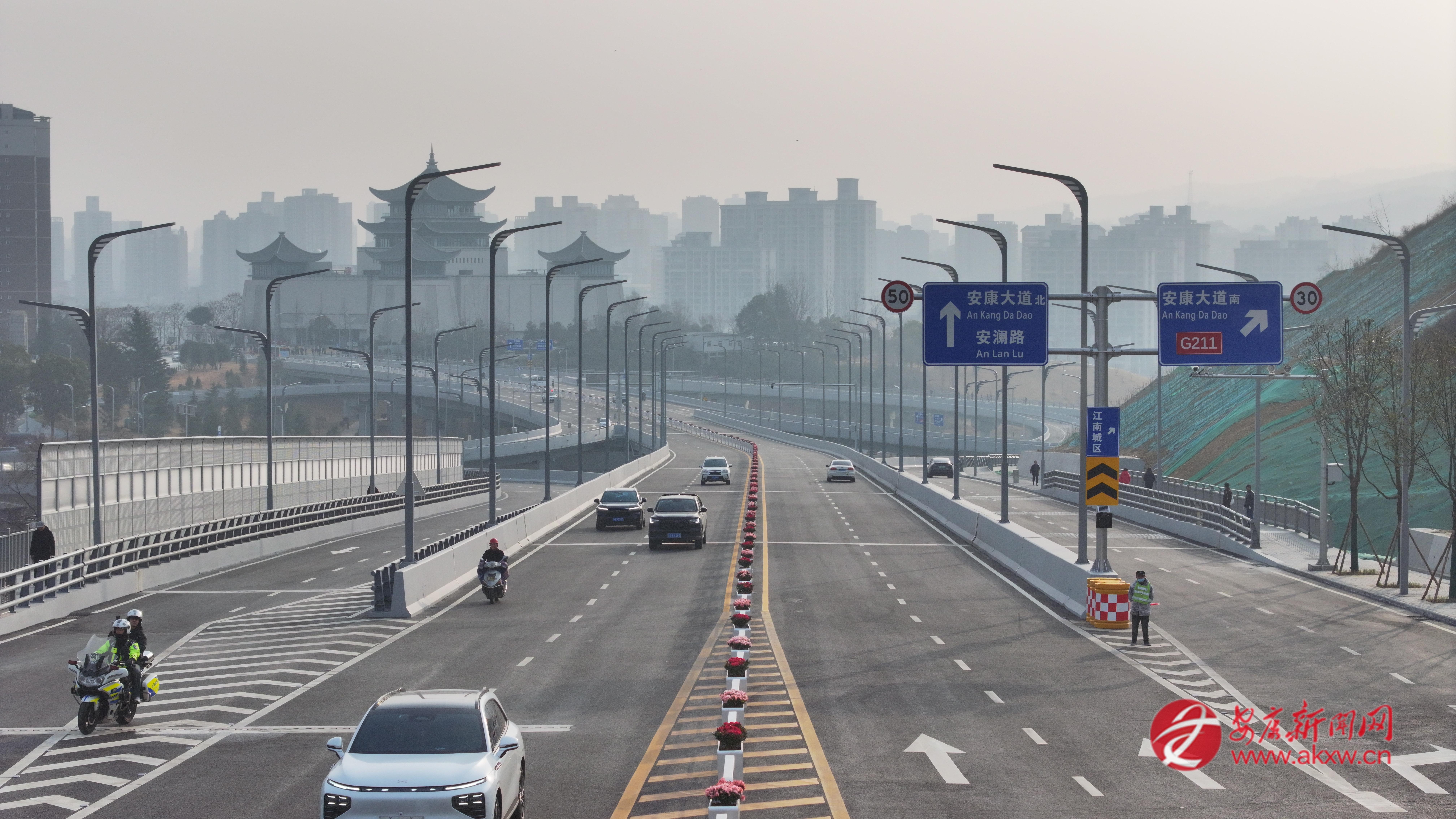 安康首座全互通立交通車