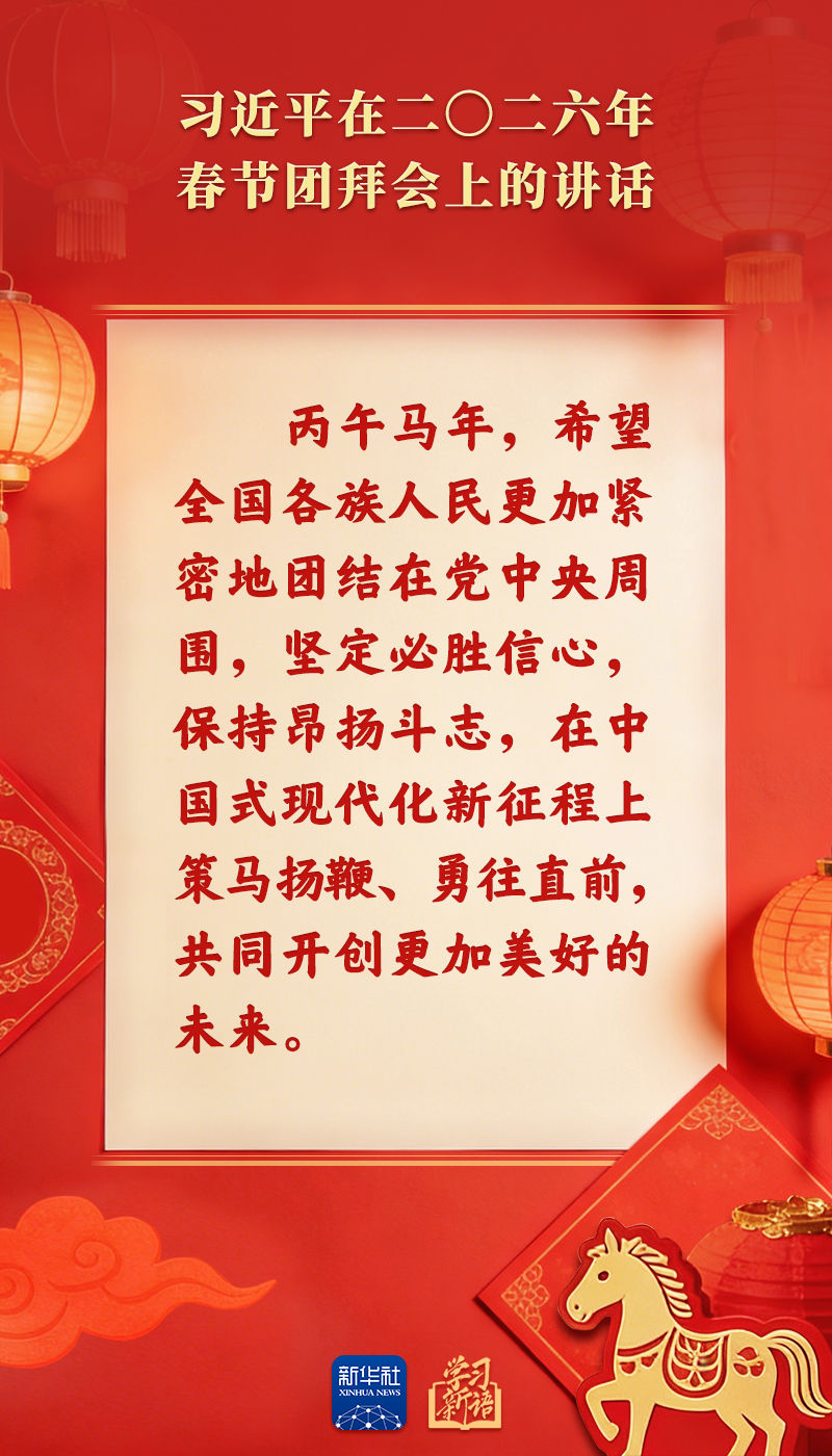 策馬揚(yáng)鞭、勇往直前!2026年春節(jié)團(tuán)拜會(huì)總書記講話金句