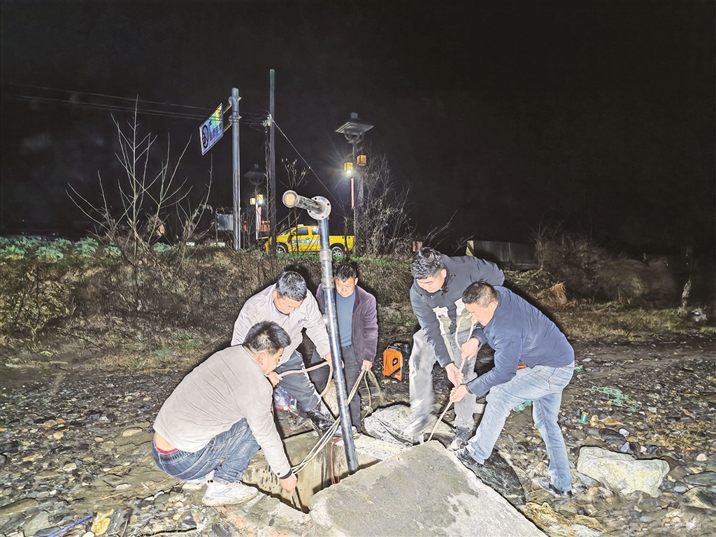 ⑨ 2月16日(除夕)凌晨,漢陰縣農村供水有限責任公司工作人員連夜搶修水泵,保障雙河口鎮(zhèn)鳳柳村全村約1500人節(jié)日用水。王延濤 攝