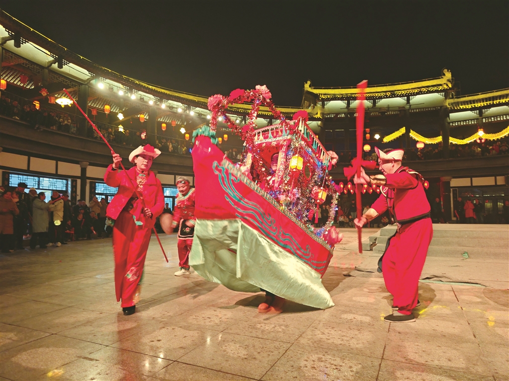 民俗文化活動中的小場子陜南花鼓戲。 王韜 攝