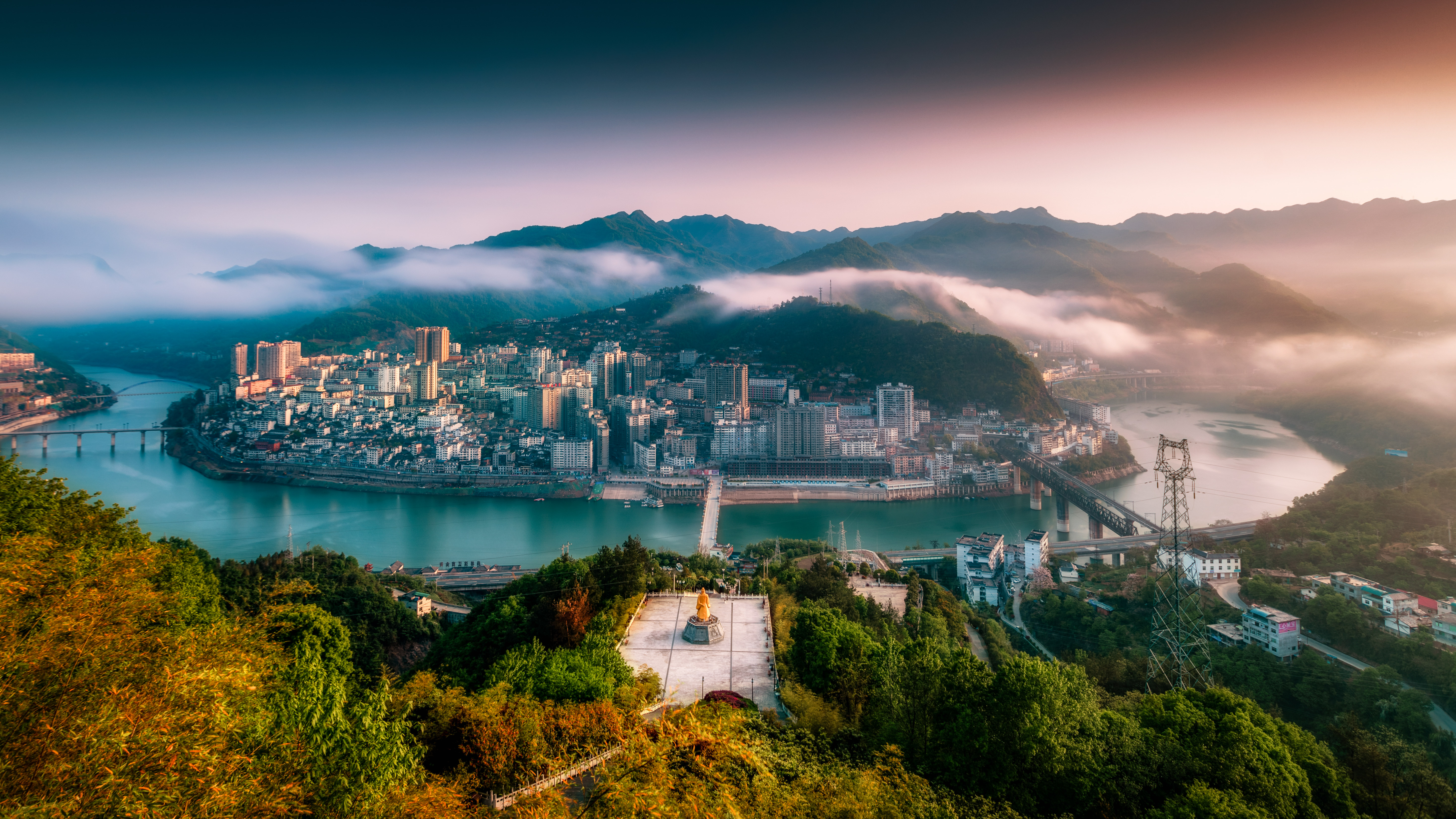 走進(jìn)文筆山巔的紫陽閣,裝修一新的紫陽“山水城市會客廳”光彩奪目。數(shù)字展廳的巨幅弧形屏上,滾動播放著紫陽四季流轉(zhuǎn)的茶山云海。