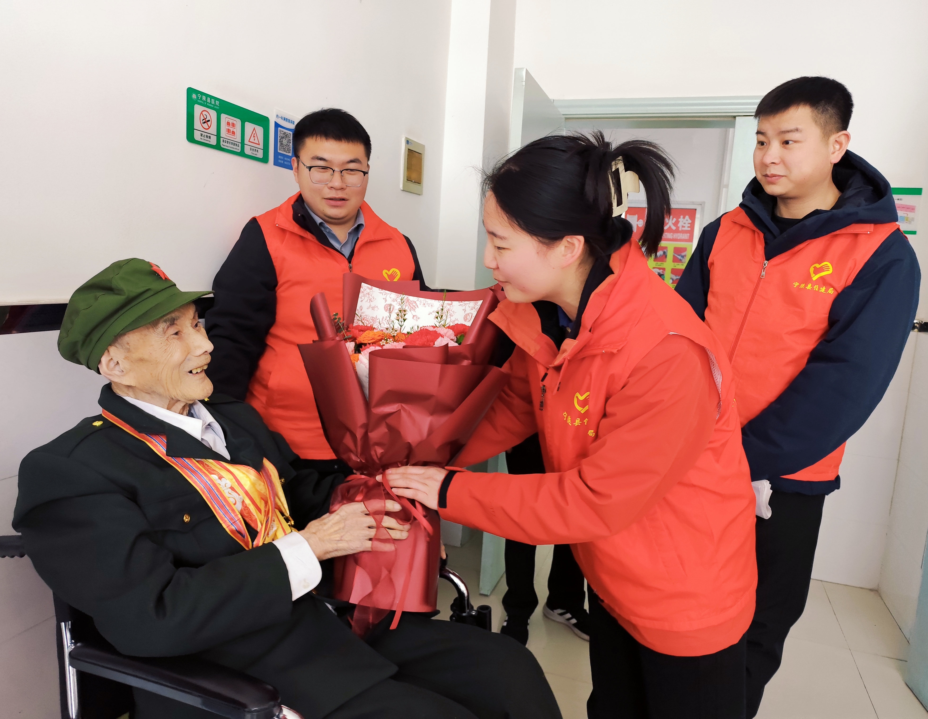 活動現(xiàn)場暖意融融,志愿者圍在老人身邊,促膝長談、噓寒問暖,細心詢問其飲食起居和身體狀況,認真傾聽那段浴血奮戰(zhàn)的革命故事?!袄先孙嬍城宓?,精神狀態(tài)一直很好?!弊o理人員李娟介紹,老人性格開朗,時常給大家講述戰(zhàn)場事跡,傳遞著滿滿的正能量。