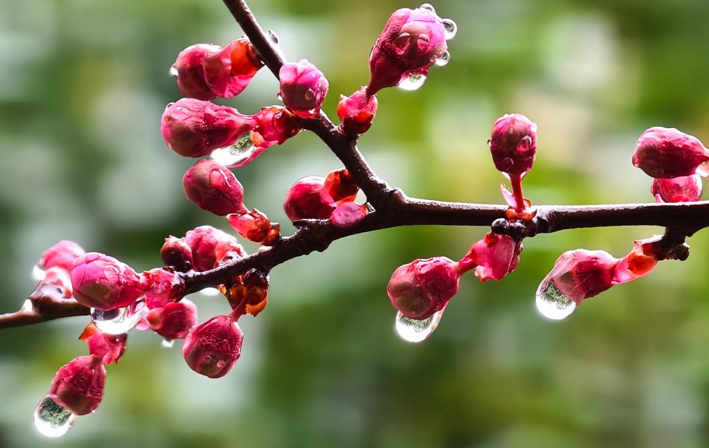 這是3月1日拍攝的河南省洛陽(yáng)市街頭花苞上的露珠。一場(chǎng)春雨過(guò)后,晶瑩剔透的雨珠綴滿枝頭,勾勒出別樣春日景致。新華社發(fā)(高山岳攝)