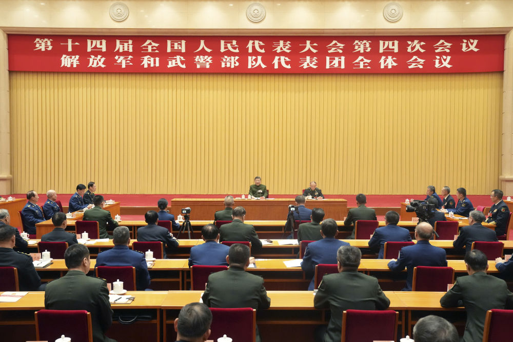 3月7日下午,中共中央總書記、國家主席、中央軍委主席習近平出席十四屆全國人大四次會議解放軍和武警部隊代表團全體會議并發(fā)表重要講話。新華社記者 李剛 攝