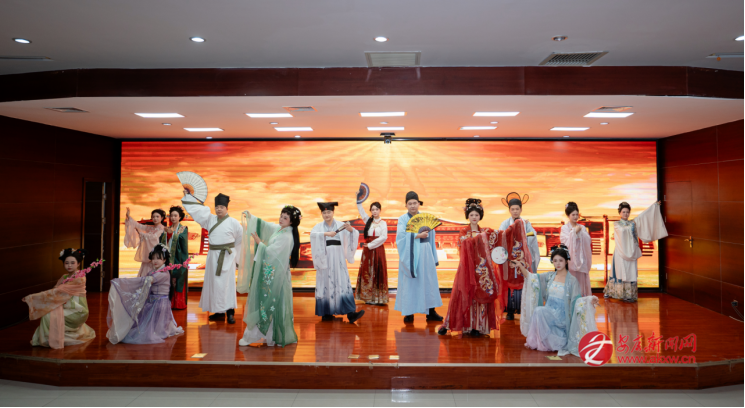 花枝映雅韻,羅衣展風(fēng)姿?;顒?dòng)現(xiàn)場(chǎng),女員工們褪去職業(yè)裝,換上襦裙、曲裾等各式漢服,簪花綰發(fā)、輕搖團(tuán)扇,一顰一笑間皆是溫婉雅致。伴隨著悠揚(yáng)的古樂,一場(chǎng)精心編排的漢服秀驚艷開場(chǎng),女職工代表緩步登臺(tái),或頷首低眉、或淺笑嫣然,在詩詞誦讀的映襯下,將中華傳統(tǒng)服飾的典雅之美演繹得淋漓盡致?!敖韼讲蛔岉毭迹毭家鄳蜒乓狻?,更令人驚喜的是,四位男士代表身著儒巾青衫現(xiàn)身助陣,平日里雷厲風(fēng)行的他們,化身謙謙君子,步履從容間盡顯儒雅風(fēng)范,現(xiàn)場(chǎng)掌聲與歡笑聲此起彼伏。
