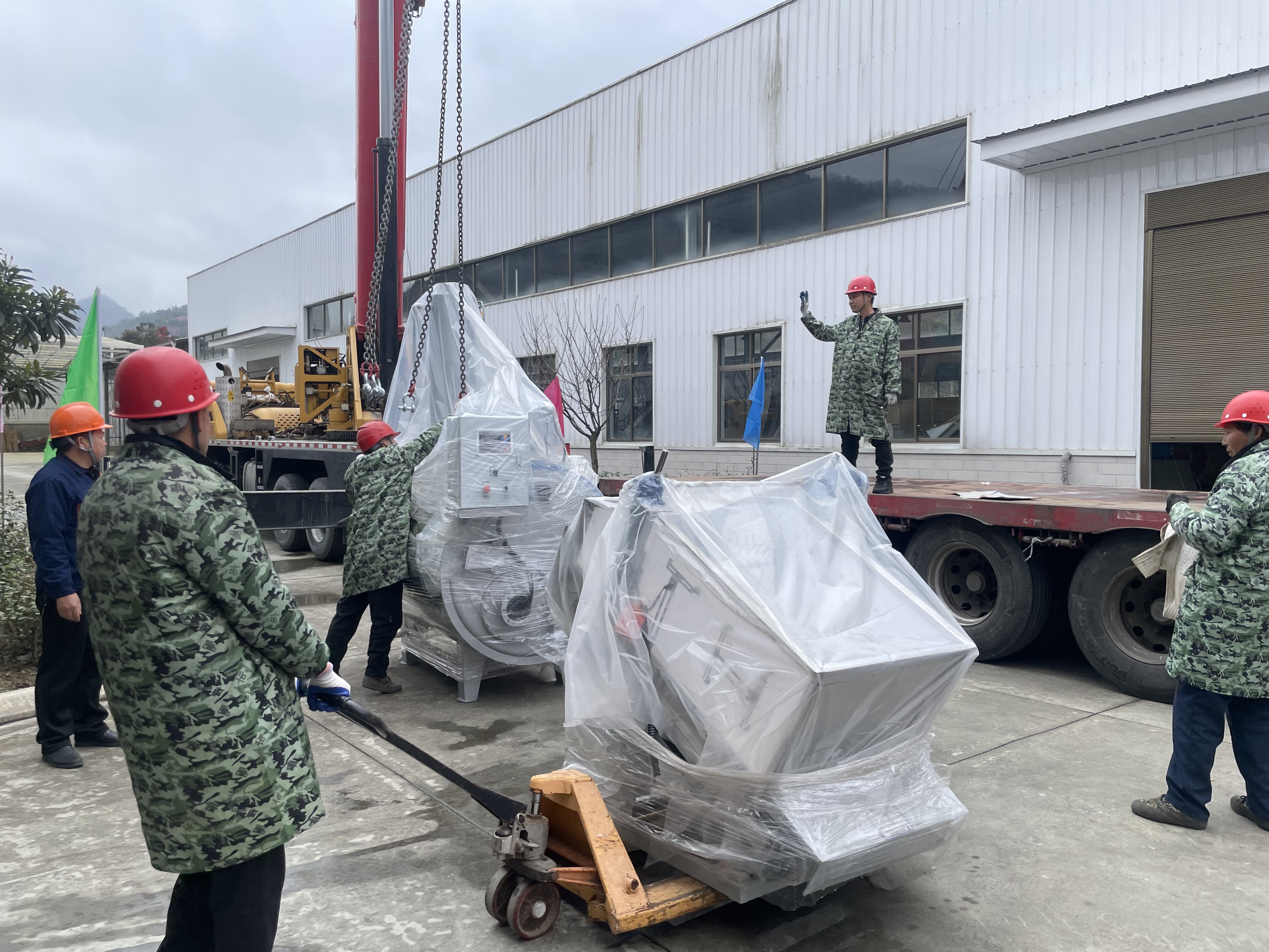 走進平利硒地抹茶茶業(yè)有限公司廠區(qū),一派繁忙景象映入眼簾:滿載設(shè)備的大型貨車緩緩駛?cè)耄踯嚀]臂起吊,工人們協(xié)同搬運,一件件精密設(shè)備被精準(zhǔn)定位。從入場指引到吊裝作業(yè),再到設(shè)備擺放,各環(huán)節(jié)環(huán)環(huán)相扣、井然有序。