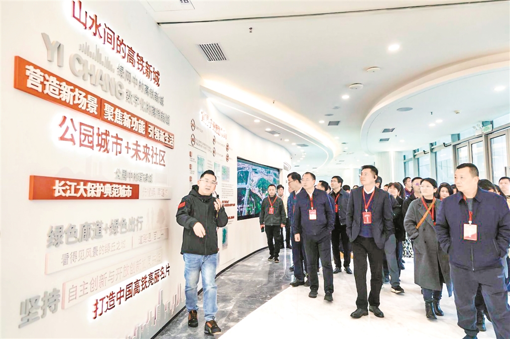 調(diào)研高鐵新城城市展廳。 三峽融媒體中心提供
