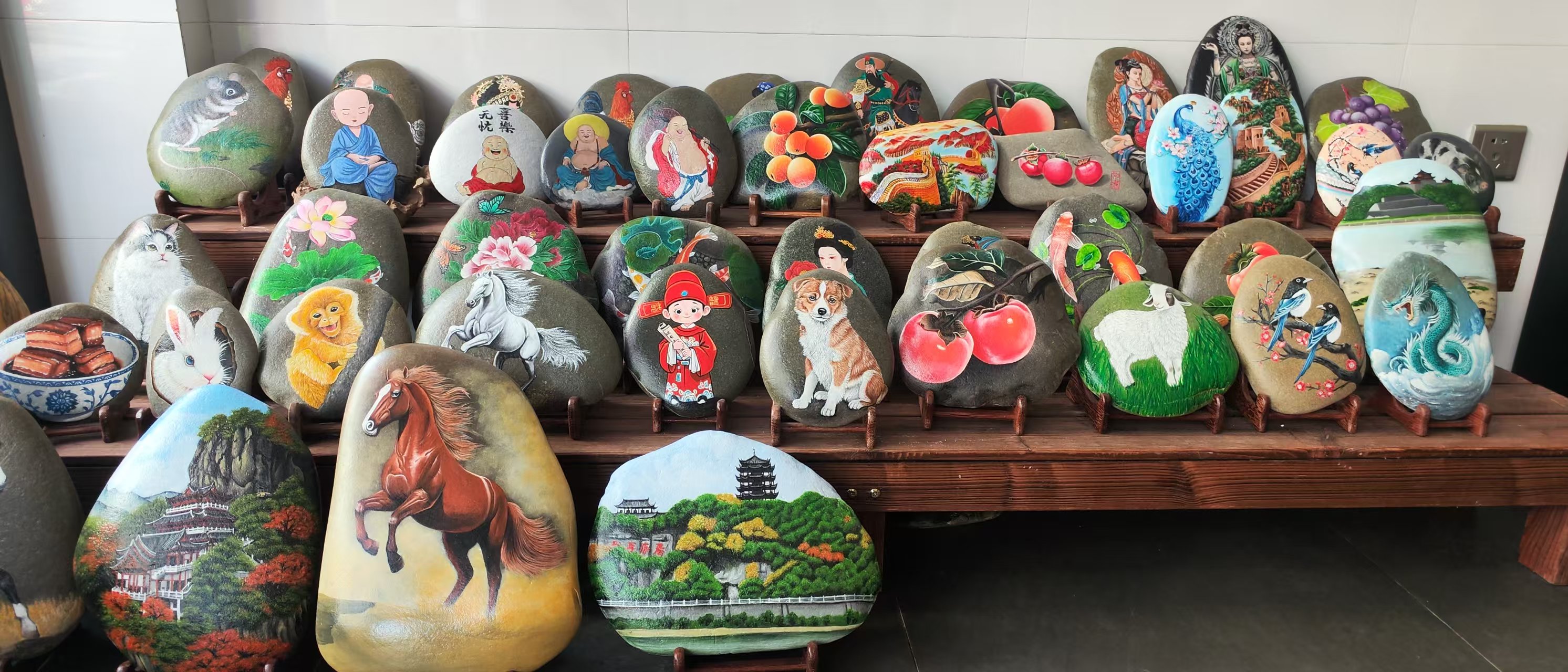 就在困頓迷茫之際,心底深藏著對繪畫的熱愛,成了照亮她前行的微光。為了排解病痛的折磨,也為了謀求一絲收入,李景麗重新拾起畫筆。起初只是在紙上作畫,一次偶然在網(wǎng)上看到石頭畫創(chuàng)作,她便萌生了嘗試的念頭。第一幅石頭畫,用的是母親壓菜缸的石頭,李景麗對著照片精心勾勒,成品出爐的那一刻,滿滿的成就感讓她重燃信心。從此,她便與漢江石相伴,每天除了吃飯睡覺,其余時(shí)間全都撲在繪畫上,山水畫、靜物、飛天神女……各類題材信手拈來,只需一張參考照片,她便能畫得惟妙惟肖。追求極致的她,總要耗時(shí)數(shù)天,直至畫作達(dá)到心中滿意的標(biāo)準(zhǔn)才肯停筆。繪畫,讓她暫時(shí)忘卻了病痛的苦楚與生活的憂愁,讓黯淡的日子重新有了溫度與希望。