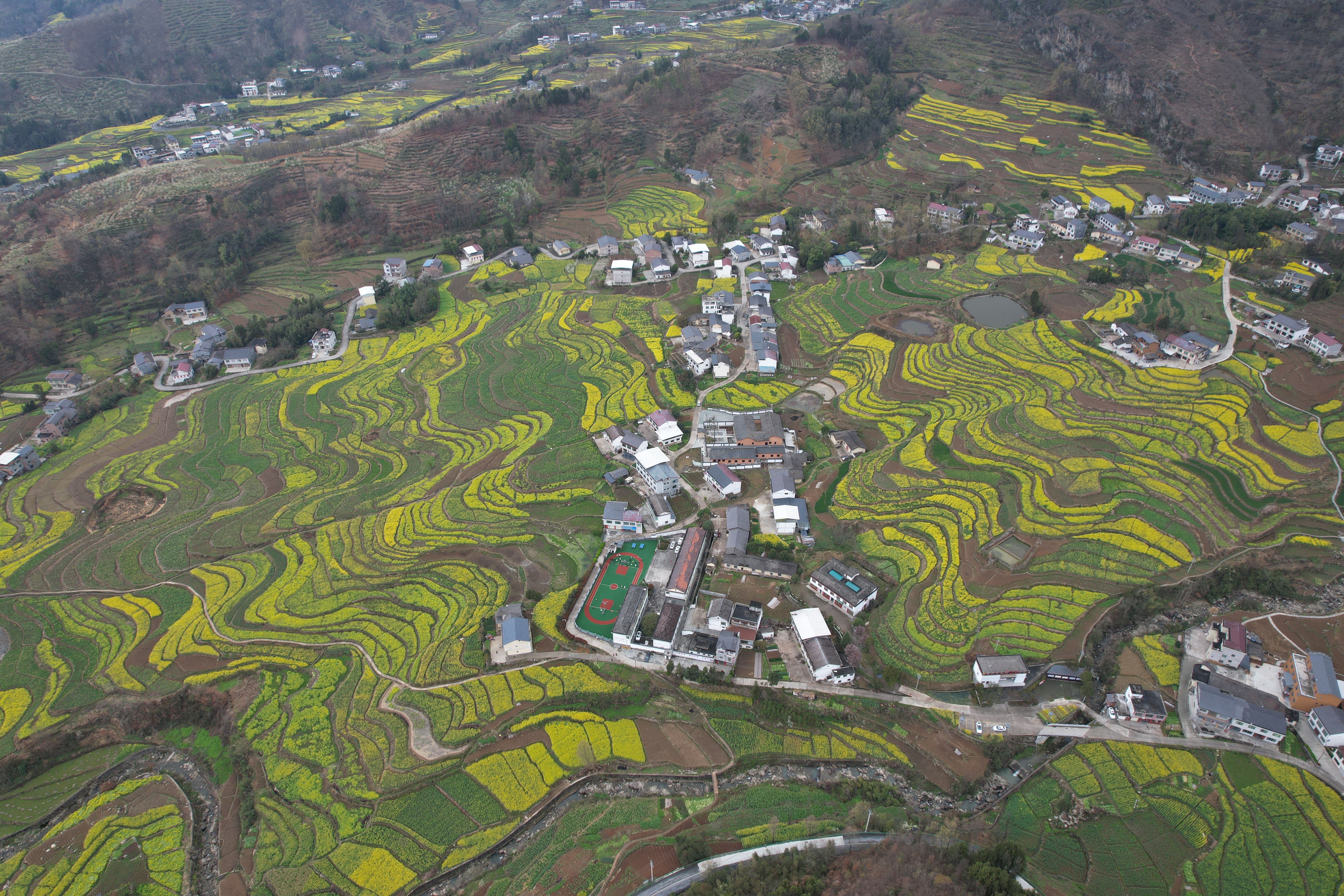 初春時(shí)節(jié),秦巴腹地春意盎然。如果說漢陰的春天有顏色,那一定少不了油菜花的那抹明黃,而其中又以鳳堰梯田為最。作為世界灌溉工程遺產(chǎn),漢陰縣鳳堰古梯田萬畝油菜花次第綻放,層層疊疊的金色花海與錯(cuò)落梯田、青山村落相映成畫,景區(qū)迎來春季旅游高峰,八方游客紛至沓來,共赴這場春日田園之約。
