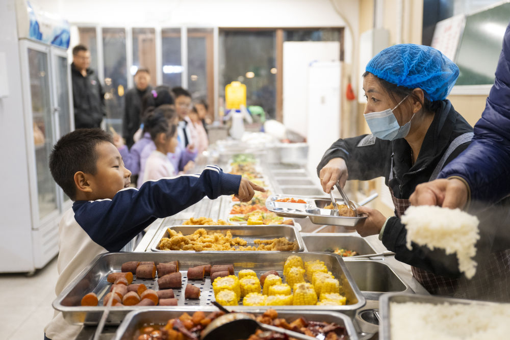 2025年11月25日,放學(xué)的小朋友在雄安新區(qū)容東片區(qū)春明北社區(qū)食堂內(nèi)用餐。春明北社區(qū)食堂每天傍晚為周邊學(xué)生提供營養(yǎng)實惠的晚餐,有效減輕雙職工家庭負擔(dān)。