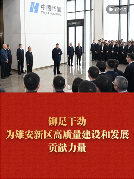 3月23日,習(xí)近平總書記來到河北雄安新區(qū),察看啟動區(qū)建設(shè)進(jìn)展,考察中國華能集團(tuán)有限公司,了解雄安新區(qū)建設(shè)發(fā)展情況,親切慰問入駐和在建疏解單位干部職工代表。