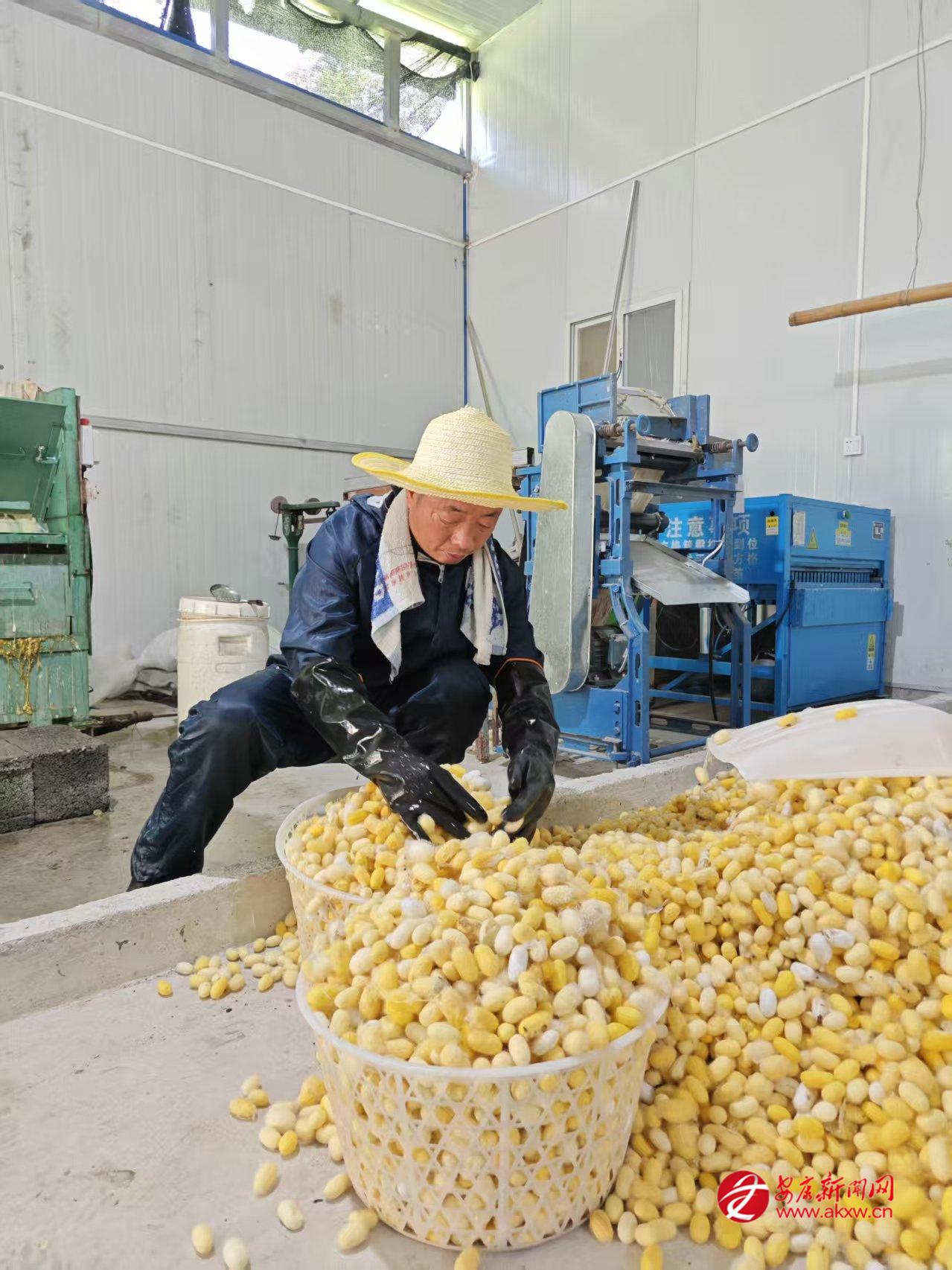 “以前養(yǎng)蠶全靠經(jīng)驗(yàn),溫濕度把控不好,蠶繭產(chǎn)量低。現(xiàn)在有了智能設(shè)備和技術(shù)指導(dǎo),養(yǎng)蠶更輕松,收入也更高了?!崩罴液哟屦B(yǎng)蠶大戶王興義感慨道。作為產(chǎn)業(yè)帶頭人,他投資200余萬(wàn)元成立家庭農(nóng)場(chǎng),配套建設(shè)標(biāo)準(zhǔn)化養(yǎng)蠶室和加工廠房,引進(jìn)滑輪升降式省力化蠶臺(tái)、自動(dòng)化養(yǎng)蠶設(shè)備,實(shí)現(xiàn)了從種養(yǎng)到加工的全鏈條升級(jí)。