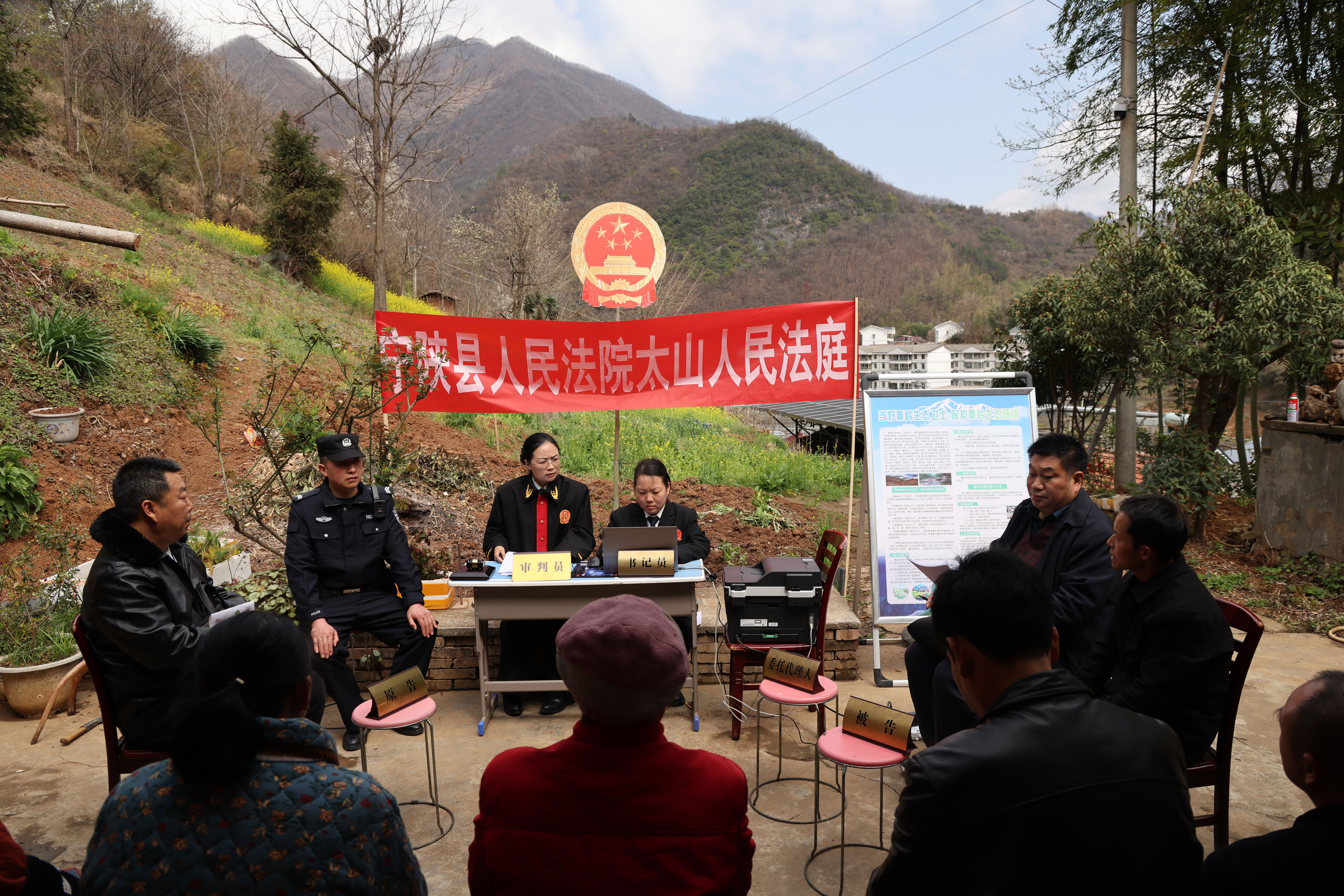 3月24日,在寧陜縣龍王鎮(zhèn)永紅村的田埂旁,金燦燦的花海映襯著莊嚴(yán)的國徽更顯熠熠生輝。寧陜縣人民法院就地審理一起排除妨害糾紛案件,成功化解了鄰里之間的多年積怨,真正實(shí)現(xiàn)案結(jié)、事了、人和。