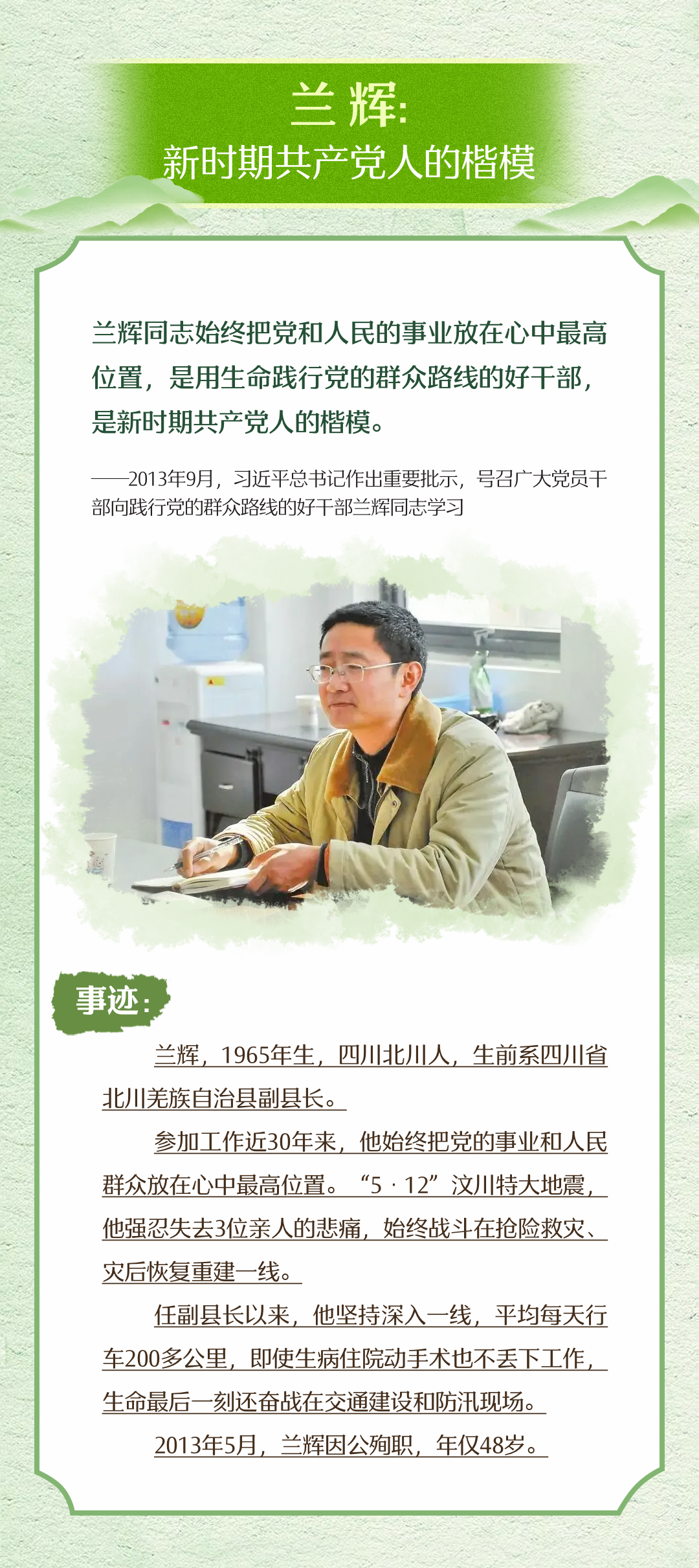 “天地英雄氣,千秋尚凜然?!绷?xí)近平總書(shū)記指出,對(duì)一切為國(guó)家、為民族、為和平付出寶貴生命的人們,不管時(shí)代怎樣變化,我們都要永遠(yuǎn)銘記他們的犧牲和奉獻(xiàn)。清明節(jié),讓我們重溫習(xí)近平總書(shū)記緬懷革命先烈以及和平年代英雄們的深情話語(yǔ),一起學(xué)習(xí)英烈事跡,賡續(xù)精神血脈,凝聚前行力量。