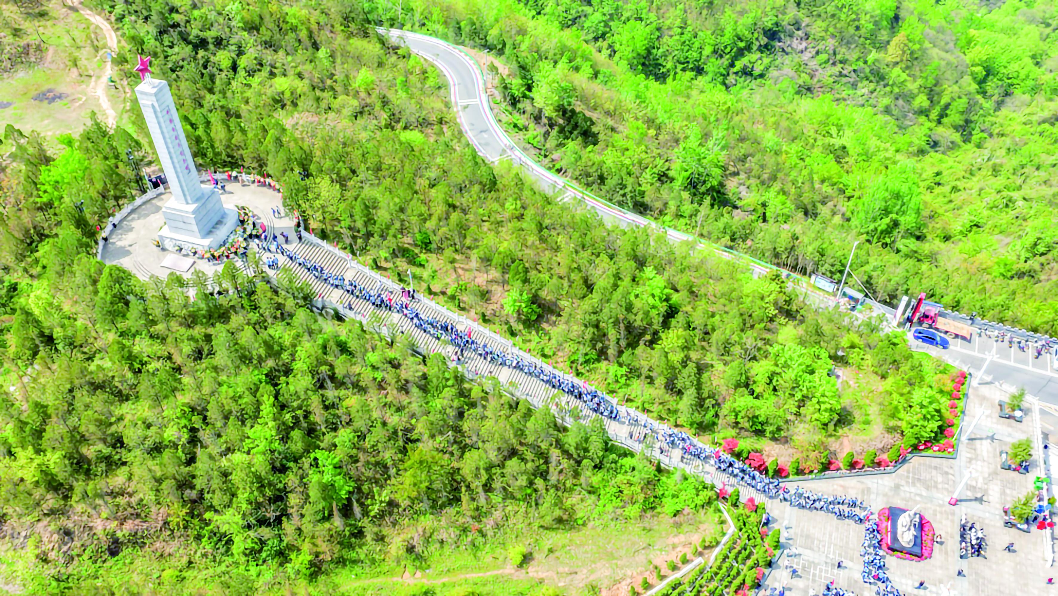 ▼ 4月3日,江北高級中學(xué)、安康中學(xué)初中部等5所學(xué)校的3000余名師生徒步赴牛蹄嶺開展清明祭奠烈士活動(dòng)。 皮勇維 攝